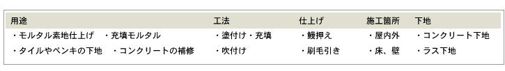 現場で水を加えるだけですぐに使える便利な乾燥モルタル材です。