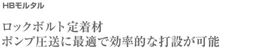 ポンプ圧送性とロックボルトの挿入性が良く、初期強度に優れています。
